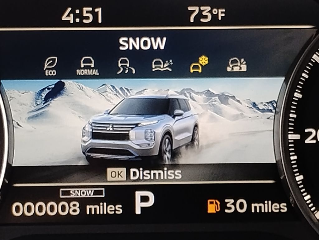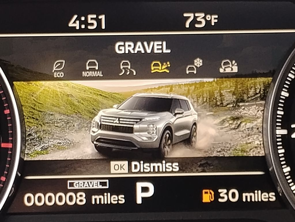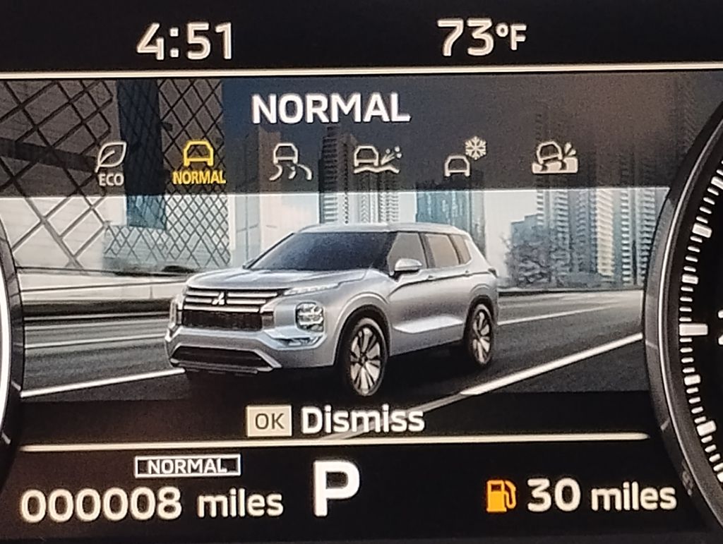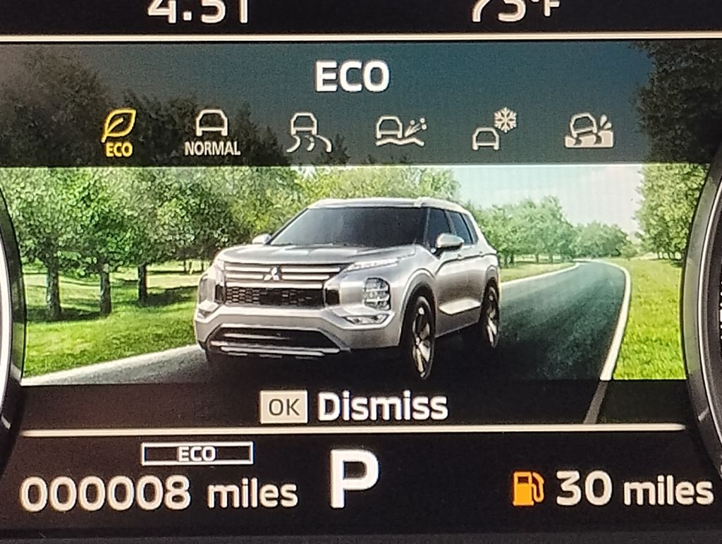 I am impressed, this Outlander has great fuel economy about 25 to 30 in town and over 35 on the highway. The interior is spacious and very nicely done. I love the dash and the easy to use functions. I'm not it savvy, but the touch screen options are easy to navigate. The body style is attractive, the front end is nice to look at. The standard options are everything I would want, heated seats, heated sideview mirrors etc. Visibility is very good and parallel parking a breeze. The large screen is so nice for backing up. Also the camera option is nice when parking. I like the exterior and interior colors. This vehicle has plenty of get up and go to make mergingon to the highway easier. - 5.0