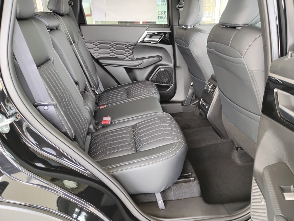 Welcome Package, 4-Wheel Disc Brakes, ABS brakes, Accessory All-Weather Floor Mats, Accessory Tonneau Cover, Active Cruise Control, Alloy wheels, Dual front impact airbags, Dual front side impact airbags, Electronic Stability Control, Emergency communication system: Mitsubishi Connect w/ 24-month trial, Front anti-roll bar, Front dual zone A/C, Heated & Ventilated Front Bucket Seats, Heated door mirrors, Heated front seats, Heated rear seats, Illuminated entry, Knee airbag, Low tire pressure warning, Navigation System, Occupant sensing airbag, Overhead airbag, Power Liftgate, Power moonroof: Panoramic, Radio: AM/FM 12.3" Navigation w/Smartphone-Link, Rear anti-roll bar, Rear side impact airbag, Remote keyless entry, Traction control, Wheels: 20" Two-Tone Alloy, 3rd row seats: split-bench, 8 Speakers, Air Conditioning, AM/FM radio: SiriusXM, Android Auto & Apple CarPlay, Auto High-beam Headlights, Auto-dimming Rear-View mirror, Automatic temperature control, Brake assist, Bumpers: body-color, Driver door bin, Driver vanity mirror, Exterior Parking Camera Rear, Four wheel independent suspension, Front Bucket Seats, Front Center Armrest w/Storage, Front fog lights, Front reading lights, Fully automatic headlights, Garage door transmitter: HomeLink, Heated steering wheel, Leather Appointed Seating Surfaces, Leather Shift Knob, Leather steering wheel, Memory seat, Outside temperature display, Overhead console, Panic alarm, Passenger door bin, Passenger vanity mirror, Power door mirrors, Power driver seat, Power passenger seat, Power steering, Power windows, Radio data system, Rain sensing wipers, Rear air conditioning, Rear seat center armrest, Rear window defroster, Rear window wiper, Reclining 3rd row seat, Security system, Speed control, Speed-Sensitive Wipers, Split folding rear seat, Spoiler, Steering wheel mounted audio controls, Tachometer, Telescoping steering wheel, Tilt steering wheel, Trip computer, Turn signal indicator mirrors, Variably intermittent wipers, and Ventilated front seats. Price includes: $500 - Customer Cash. Exp. 02/02/2026 $500 - Military Program. Exp. 03/31/2026