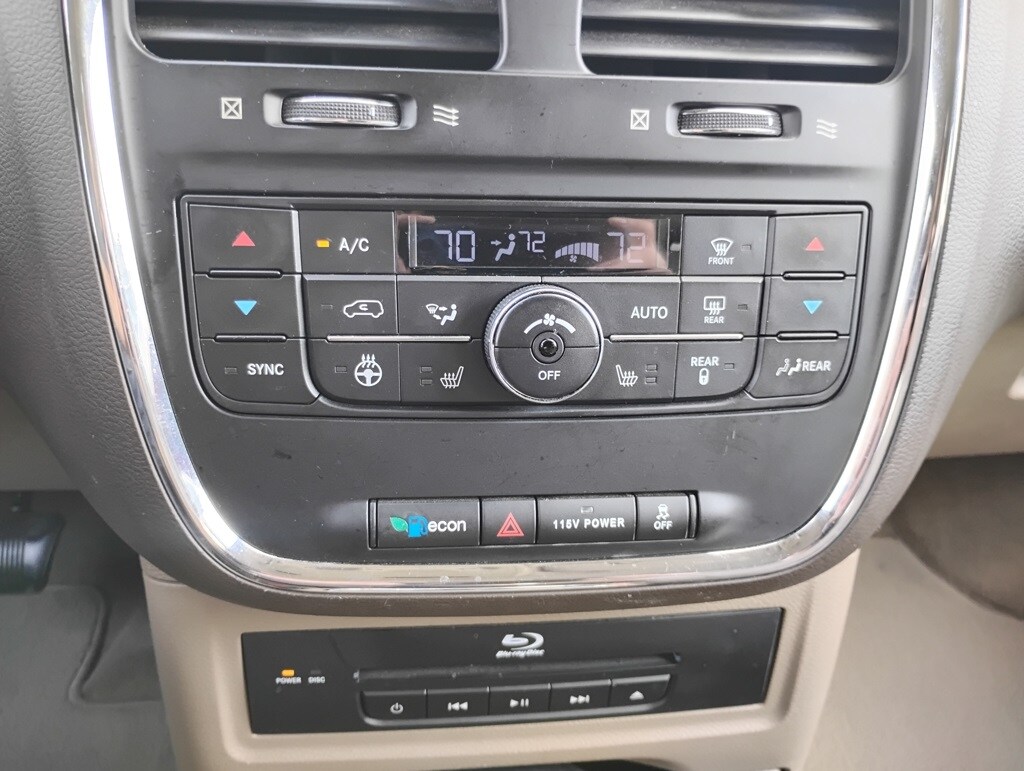 Driver Convenience Group (Bright Door Handles, Heated Front Seats, Heated Second Row Seats, Heated Steering Wheel, Keyless Enter-N-Go, Power Adjustable Pedals, and Remote Proximity Keyless Entry), Dual DVD/Blu-Ray Entertainment (115V Auxiliary Power Outlet, 2nd Row Overhead 9" VGA Video Screen, 3rd Row Overhead 9" VGA Video Screen, Blu-Ray/DVD Player, Charge Only Remote USB Port, High Definition Multimedia Interface, Video Remote Control, and Wireless Headphones), Quick Order Package 29J, 4D Passenger Van, 3.6L 6-Cylinder SMPI Flex Fuel DOHC, 6-Speed Automatic, FWD, Bright White Clearcoat, Dark Frost Beige/Medium Frost Beige Interior Leather, 17" x 6.5" Aluminum Painted Wheels, 4-Wheel Disc Brakes, ABS brakes, Air Conditioning, Anti-whiplash front head restraints, Automatic temperature control, Dual front impact airbags, Front dual zone A/C, Rear air conditioning, 2nd Row Overhead 9" Video Screen, 3.16 Axle Ratio, 3rd row seats: split-bench, 40GB Hard Drive w/28GB Available, 6 Speakers, 6.5" Touch Screen Display, A/V remote, Alloy wheels, AM/FM radio: SiriusXM, Audio Jack Input for Mobile Devices, Auto High-beam Headlights, Auto-dimming door mirrors, Auto-dimming Rear-View mirror, Bodyside moldings, Brake assist, Bumpers: body-color, CD player, Compass, Delay-off headlights, Driver door bin, Driver vanity mirror, Driver's Seat Mounted Armrest, Dual front side impact airbags, DVD-Audio, Electronic Stability Control, Exterior Parking Camera Rear, Front anti-roll bar, Front Bucket Seats, Front fog lights, Front reading lights, Front wheel independent suspension, Fully automatic headlights, Garage door transmitter, Headphones, Heated door mirrors, Illuminated entry, Knee airbag, Leather Shift Knob, Leather Trimmed Bucket Seats, Low tire pressure warning, Occupant sensing airbag, Outside temperature display, Overhead airbag, Overhead console, Panic alarm, ParkView Rear Back-Up Camera, Passenger door bin, Passenger seat mounted armrest, Passenger vanity mirror, Power door mirrors, Power driver seat, Power Liftgate, Power passenger seat, Power steering, Power windows, Radio data system, Radio: Uconnect 430 CD/DVD/MP3/HDD, Rain sensing wipers, Rear reading lights, Rear window defroster, Rear window wiper, Reclining 3rd row seat, Remote keyless entry, Roof rack, Security system, Speed control, Split folding rear seat, Spoiler, Steering wheel mounted audio controls, Tachometer, Telescoping steering wheel, Tilt steering wheel, Touring Suspension, Traction control, Trip computer, Turn signal indicator mirrors, Uconnect Voice Command w/Bluetooth, and Variably intermittent wipers. Recent Arrival!