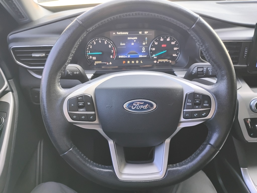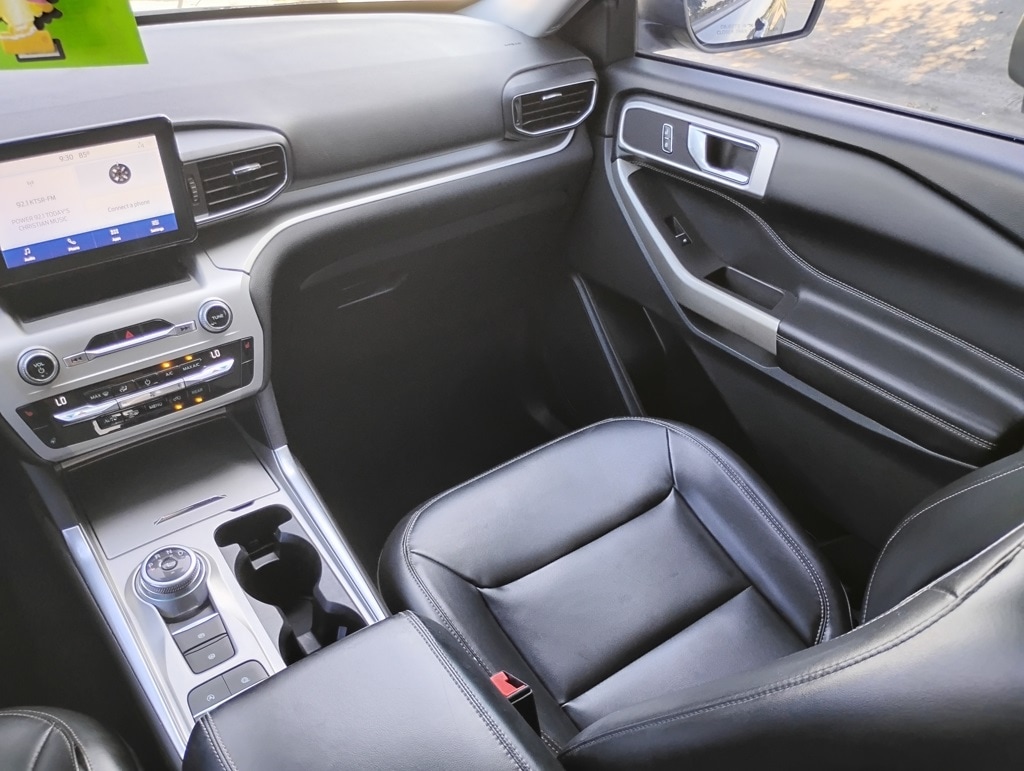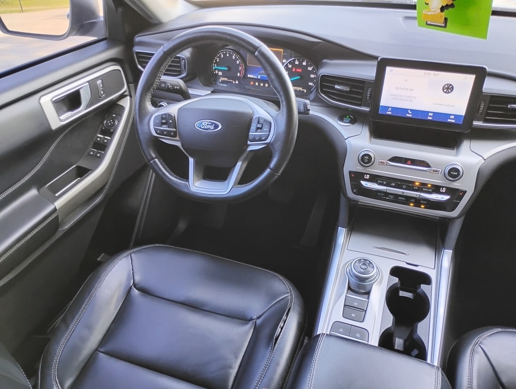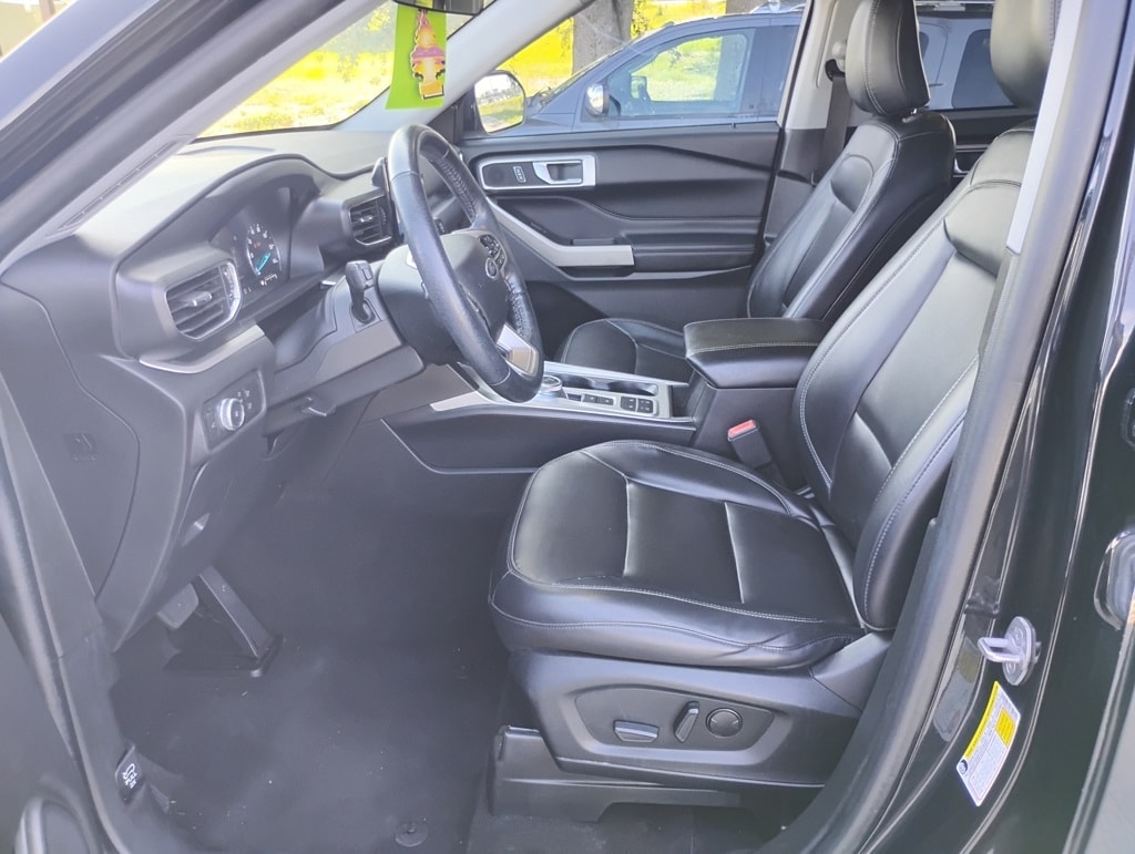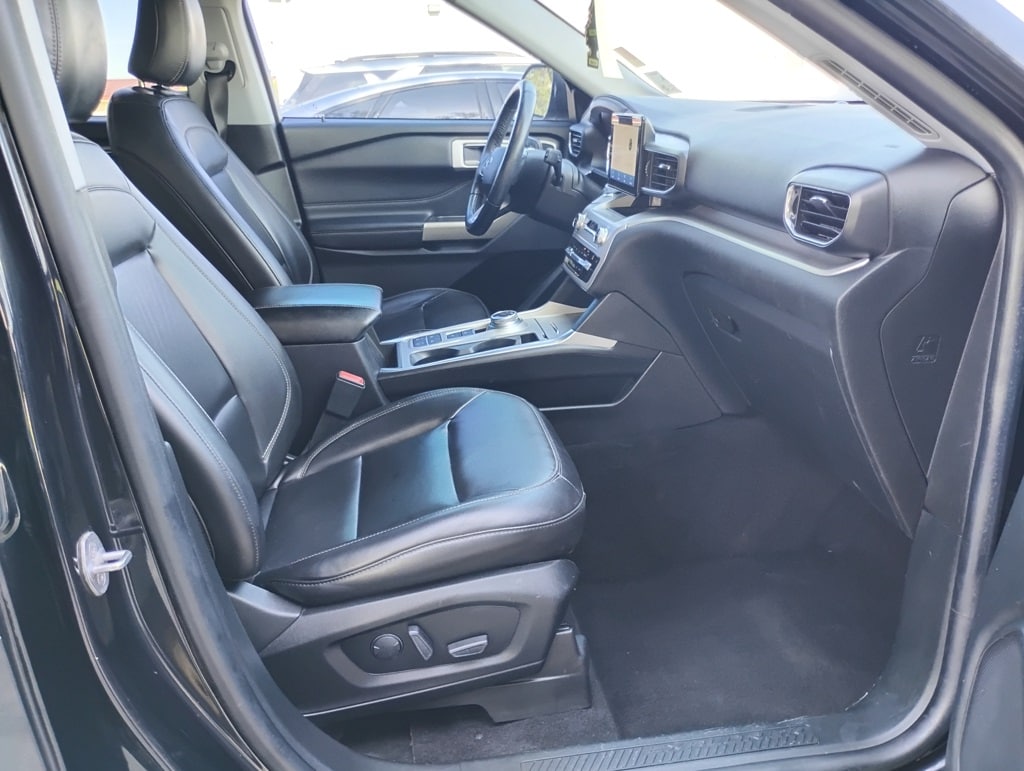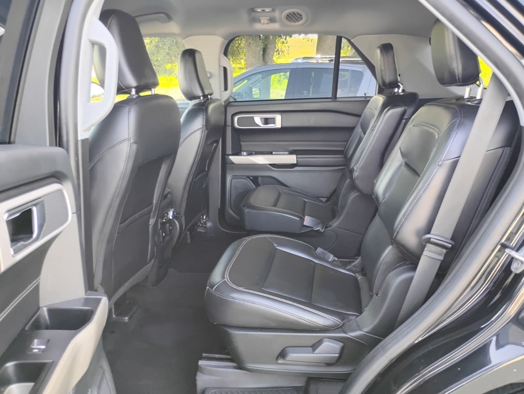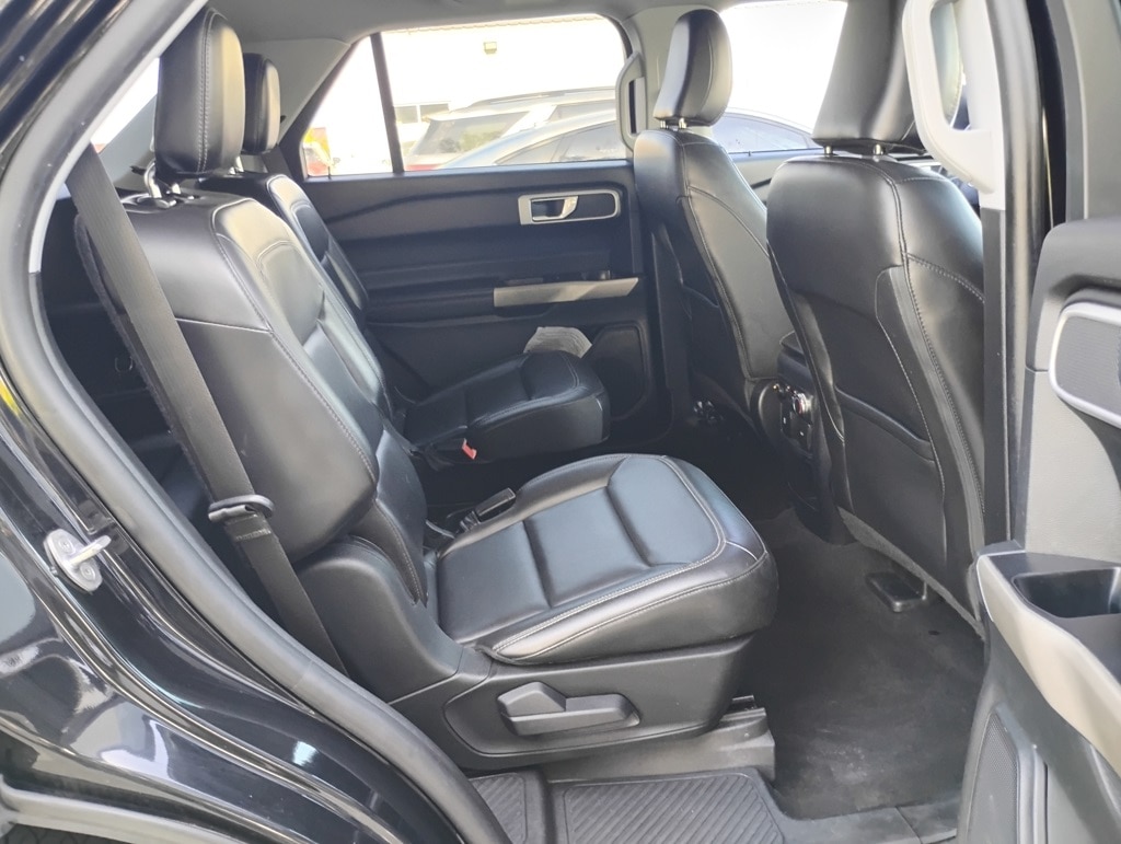Equipment Group 202A (Acoustic-Laminated Front Side Windows, ActiveX Captain's Chairs, Heated Steering Wheel, LED Fog Lamps, and Remote Start System), Explorer XLT, 4D Sport Utility, 2.3L EcoBoost I-4, 10-Speed Automatic, RWD, Black Metallic, Ebony Cloth, 20" Premium Painted Aluminum Wheels, Automatic temperature control, Brake assist, Electronic Stability Control, Passenger door bin, Power Liftgate, SYNC 3 Communications & Entertainment System, 1st Row Heated Seats, 3.58 Non-Limited-Slip Rear Axle Ratio, 3rd row seats: bench, 4-Wheel Disc Brakes, 6 Speakers, ABS brakes, Air Conditioning, Alloy wheels, AM/FM radio: SiriusXM, AM/FM Stereo, Auto High-beam Headlights, Bumpers: body-color, Compass, Delay-off headlights, Driver door bin, Driver vanity mirror, Dual front impact airbags, Dual front side impact airbags, Emergency communication system: SYNC 3 911 Assist, Exterior Parking Camera Rear, FordPass Connect, Four wheel independent suspension, Front anti-roll bar, Front Bucket Seats, Front Center Armrest, Front dual zone A/C, Front reading lights, Fully automatic headlights, Heated door mirrors, Heated front seats, Illuminated entry, Knee airbag, Leather steering wheel, Low tire pressure warning, Occupant sensing airbag, Outside temperature display, Overhead airbag, Overhead console, Panic alarm, Passenger vanity mirror, Power door mirrors, Power driver seat, Power passenger seat, Power steering, Power windows, Rear air conditioning, Rear anti-roll bar, Rear reading lights, Rear window defroster, Rear window wiper, Remote keyless entry, Roof rack: rails only, Security system, Speed control, Speed-sensing steering, Speed-Sensitive Wipers, Split folding rear seat, Spoiler, Steering wheel mounted audio controls, SYNC 3/Apple CarPlay/Android Auto, Tachometer, Telescoping steering wheel, Tilt steering wheel, Traction control, Trip computer, Unique Cloth Captain's Chairs, Variably intermittent wipers, and Wheels: 18" 5-Spoke Sparkle Silver-Painted Alum. 21/28 City/Highway MPG
