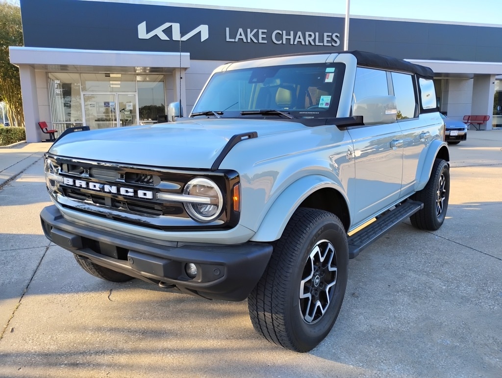 Priced below KBB Fair Purchase Price! Eruption Green Metallic 2023 Ford Bronco Outer Banks 4WD 10-Speed Automatic 2.7L EcoBoost V6 *CLEAN HISTORY...NO ACCIDENTS REPORTED*, *ONE OWNER...NO ACCIDENTS REPORTED*, Bronco Outer Banks Advanced, 4D Sport Utility, 2.7L EcoBoost V6, 10-Speed Automatic, 4WD, Eruption Green Metallic, 12" LCD Capacitive Touchscreen w/Swipe Capability, 360-Degree Camera, 4-Wheel Disc Brakes, ABS brakes, Additional Sound Deadening, Air Conditioning, Auto High-beam Headlights, Brake assist, Delay-off headlights, Dual front impact airbags, Dual front side impact airbags, Electronic Stability Control, Emergency communication system: 911 Assist, Equipment Group 313A High Package, Front anti-roll bar, Front Center Armrest, Front Parking Sensors, Front wheel independent suspension, Fully automatic headlights, Information on Demand Panel, Integrated roll-over protection, Low tire pressure warning, Occupant sensing airbag, Overhead airbag, Panic alarm, Passenger door bin, Security system, Sideview Mirrors, SiriusXM Radio w/360L, SYNC 4, Traction control.