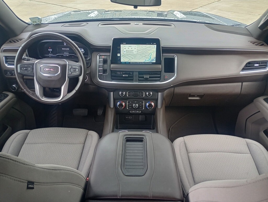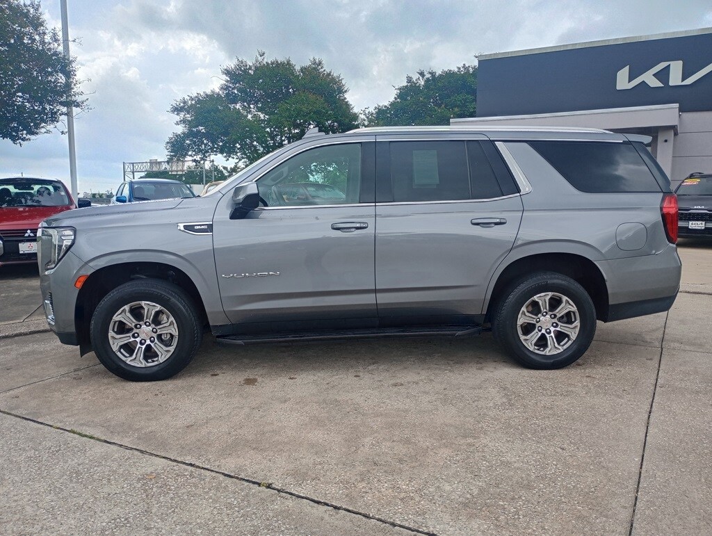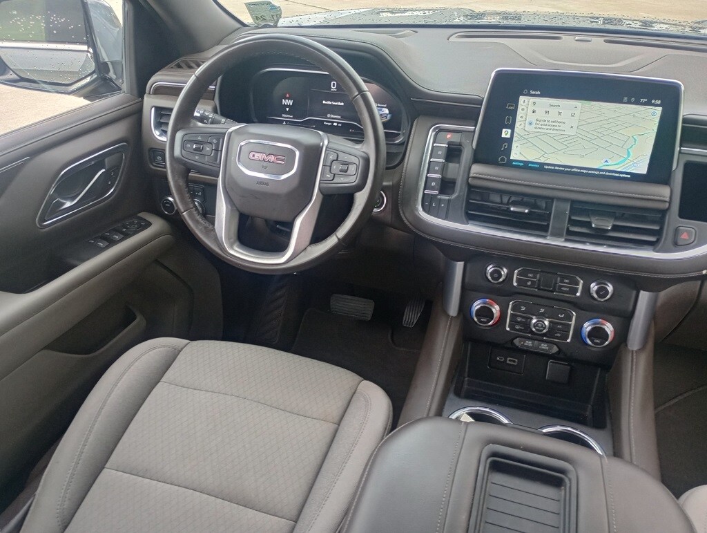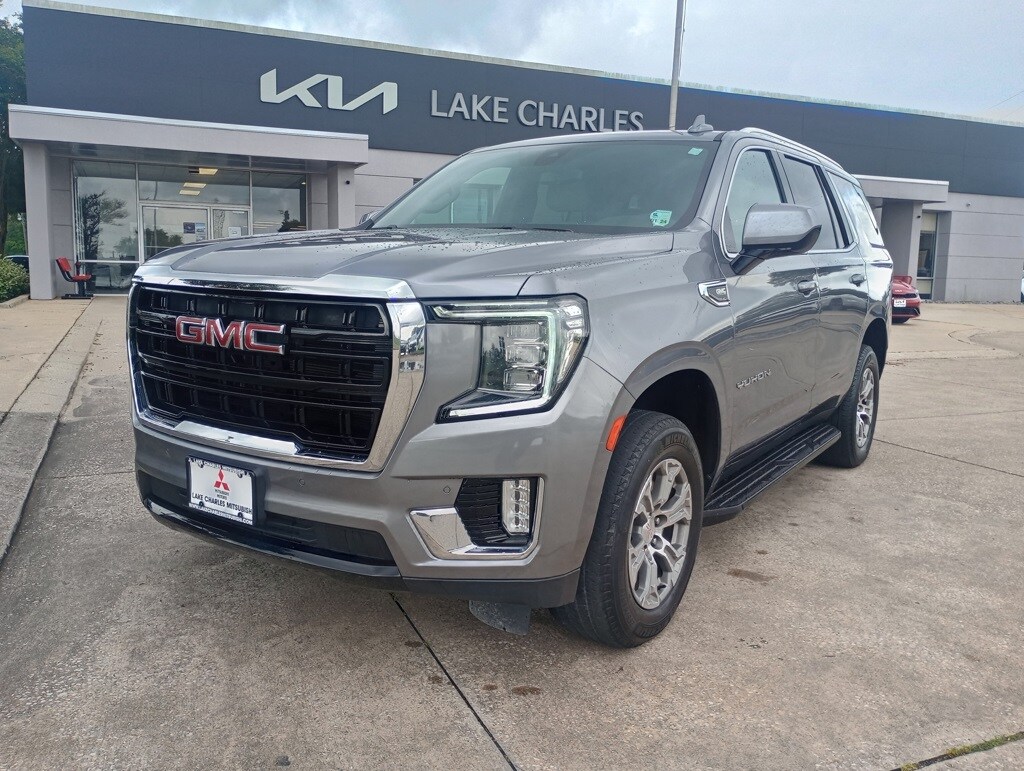 Priced below KBB Fair Purchase Price! Satin Steel Metallic 2022 GMC Yukon SLE RWD 10-Speed Automatic with Overdrive EcoTec3 5.3L V8 *RECENT TRADE IN*, Yukon SLE, 4D Sport Utility, EcoTec3 5.3L V8, 10-Speed Automatic with Overdrive, RWD, Satin Steel Metallic, Dark Walnut/Slate Cloth, 3rd row seats: split-bench, 4-Wheel Disc Brakes, 6 Speakers, 6-Speaker Audio System Feature, ABS brakes, Air Conditioning, Alloy wheels, AM/FM radio: SiriusXM with 360L, AM/FM Stereo, Apple CarPlay/Android Auto, Auto High-beam Headlights, Automatic Stop/Start, Automatic temperature control, Brake assist, Bumpers: body-color, Cloth Seat Trim, Compass, Delay-off headlights, Dual front impact airbags, Dual front side impact airbags, Electronic Stability Control, Emergency communication system: OnStar and GMC Connected Services capable, Four wheel independent suspension, Front anti-roll bar, Front Bucket Seats, Front Center Armrest, Front dual zone A/C, Front fog lights, Front reading lights, Fully automatic headlights, GMC Pro Safety Plus Package, Heated door mirrors, Illuminated entry, Lane Change Alert w/Side Blind Zone Alert, Lane Departure Warning System, Leather steering wheel, License Plate Front Mounting Package, Low tire pressure warning, Navigation System, Not Equipped w/Steering Column Lock, Occupant sensing airbag, Outside temperature display, Overhead airbag, Overhead console, Panic alarm, Passenger door bin, Passenger vanity mirror, Power door mirrors, Power driver seat, Power passenger seat, Power steering, Power windows, Preferred Equipment Group 3SA, Premium Smooth Ride Suspension, Rain sensing wipers, Rear air conditioning, Rear anti-roll bar, Rear Cross Traffic Alert, Rear reading lights, Rear seat center armrest, Rear window defroster, Rear window wiper, Remote keyless entry, Roof rack: rails only, Security system, SiriusXM w/360L, Speed control, Speed-sensing steering, Split folding rear seat, Spoiler, Start/Stop System Disable Button, Steering wheel mounted audio controls, Tachometer, Tilt steering wheel, Traction control, Variably intermittent wipers, Voltmeter.