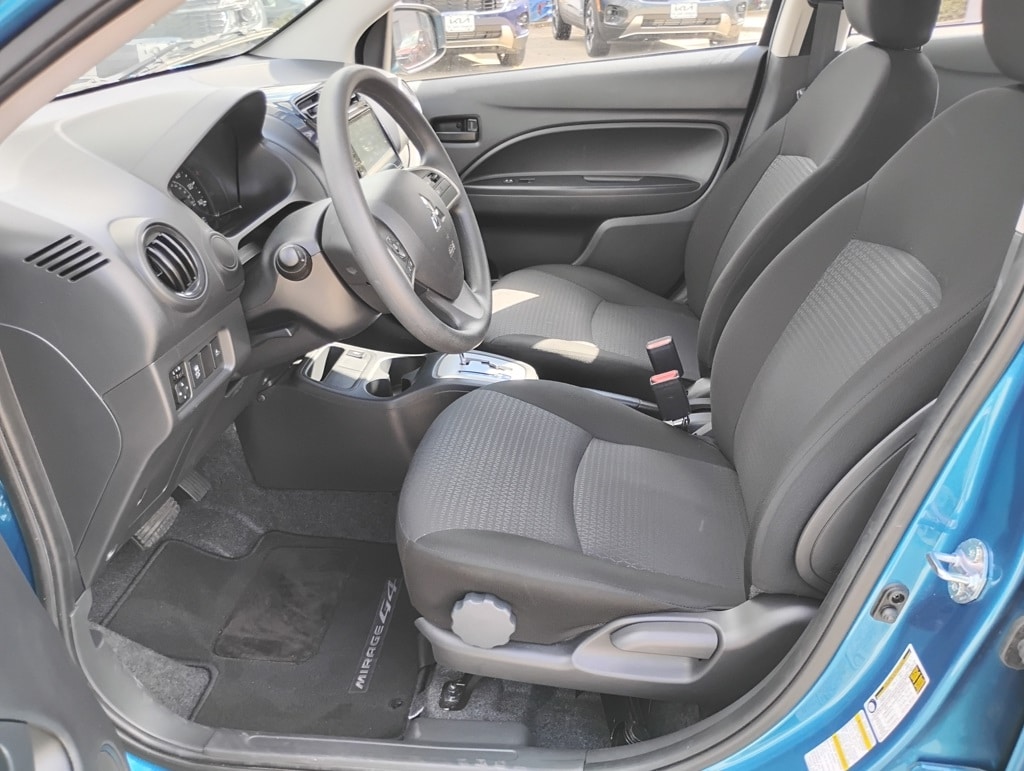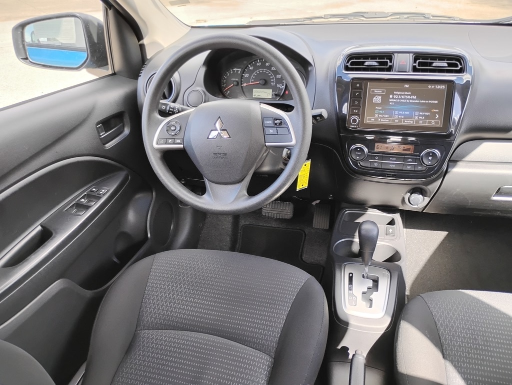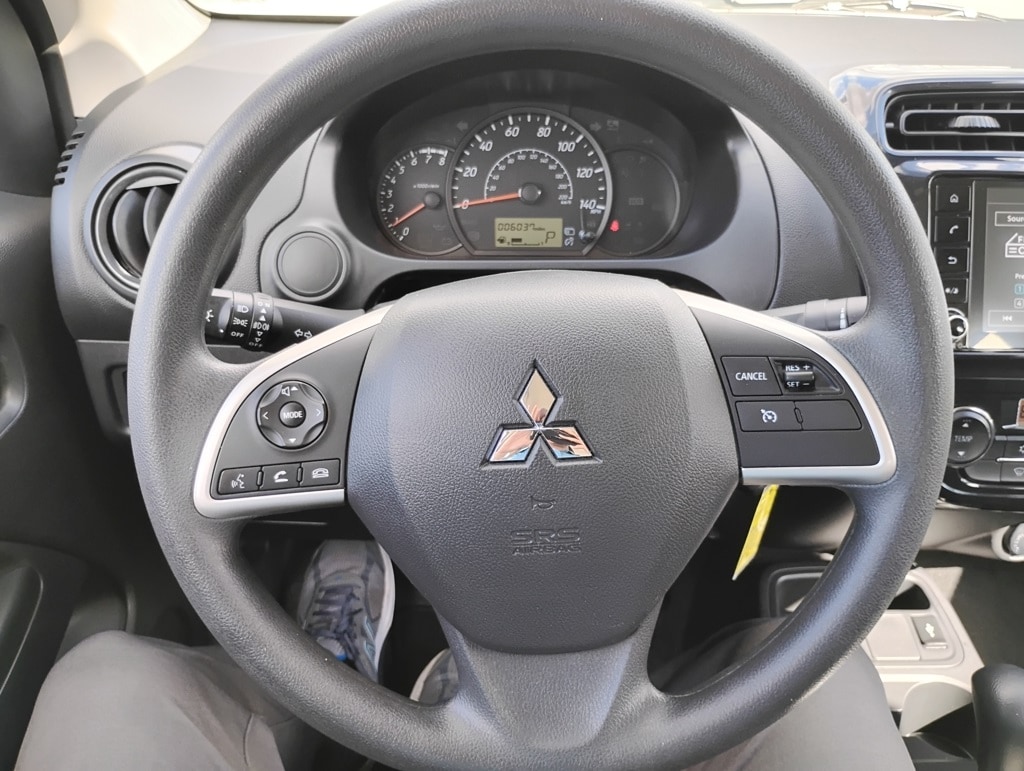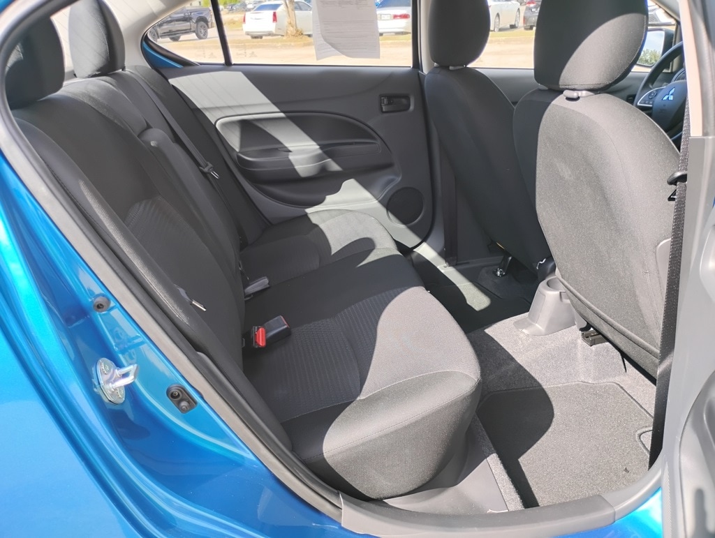 4D Sedan, 1.2L 3-Cylinder DOHC MIVEC, CVT, FWD, Blue, 15" Alloy Wheels, ABS brakes, Alloy wheels, Electronic Stability Control, Illuminated entry, Low tire pressure warning, Remote keyless entry, Traction control, 4 Speakers, Air Conditioning, AM/FM radio, Android Auto & Apple CarPlay, Automatic temperature control, Brake assist, Bumpers: body-color, Delay-off headlights, Driver door bin, Driver vanity mirror, Dual front impact airbags, Dual front side impact airbags, Exterior Parking Camera Rear, Fabric Seat Trim, Front anti-roll bar, Front Bucket Seats, Front fog lights, Front reading lights, Front wheel independent suspension, Fully automatic headlights, Knee airbag, Leather Shift Knob, Occupant sensing airbag, Overhead airbag, Panic alarm, Passenger door bin, Passenger vanity mirror, Power door mirrors, Power steering, Power windows, Radio: 7.0" Smartphone-Link Display Audio (SDA), Rain sensing wipers, Rear seat center armrest, Rear window defroster, Speed control, Spoiler, Steering wheel mounted audio controls, Tachometer, Tilt steering wheel, Trip computer, and Variably intermittent wipers. 35/41 City/Highway MPG