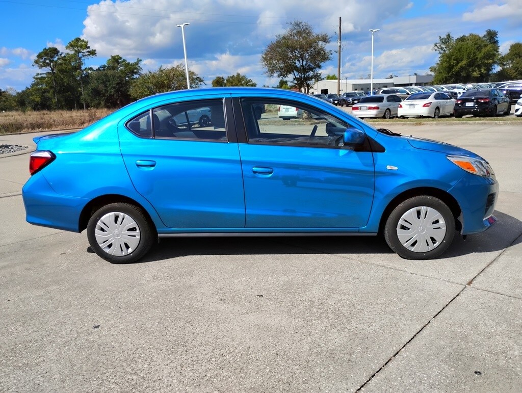 Blue 2024 Mitsubishi Mirage G4 LE FWD CVT 1.2L 3-Cylinder DOHC MIVEC 4D Sedan, 1.2L 3-Cylinder DOHC MIVEC, CVT, FWD, Blue, 15" Alloy Wheels, ABS brakes, Alloy wheels, Electronic Stability Control, Illuminated entry, Low tire pressure warning, Remote keyless entry, Traction control.