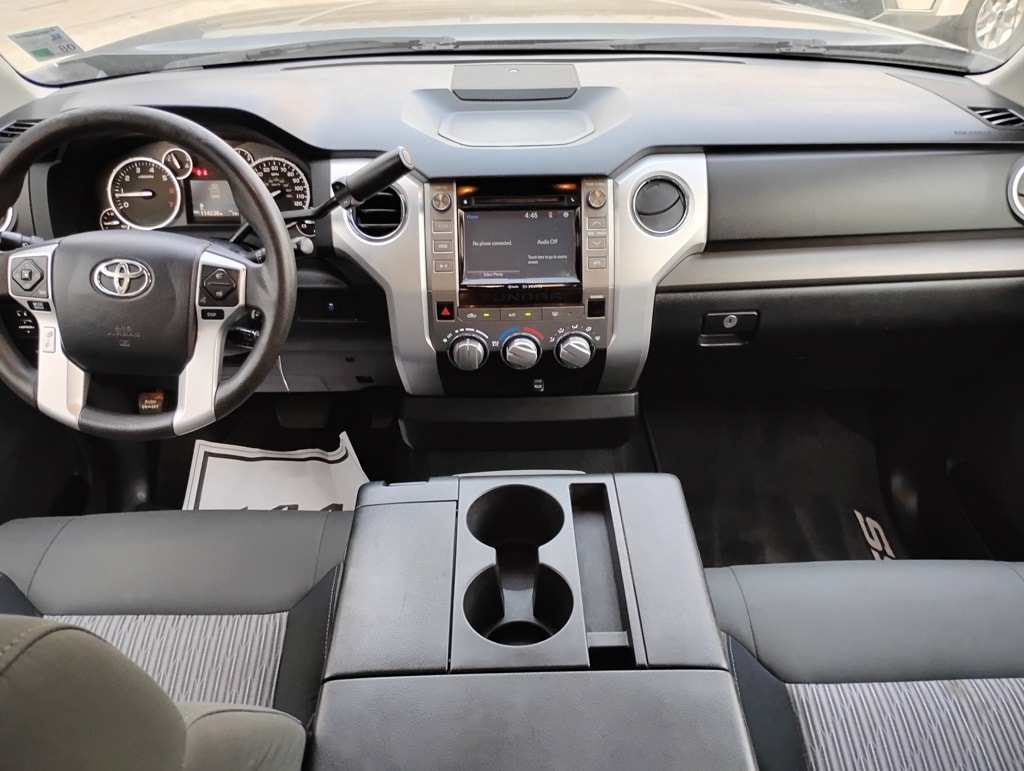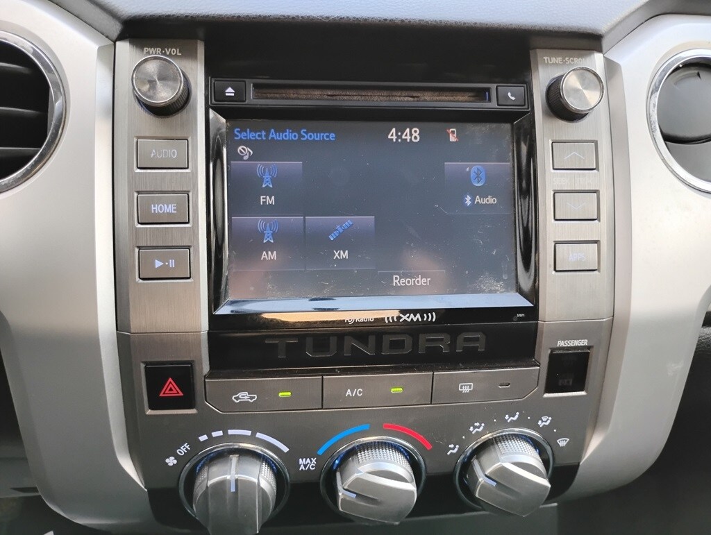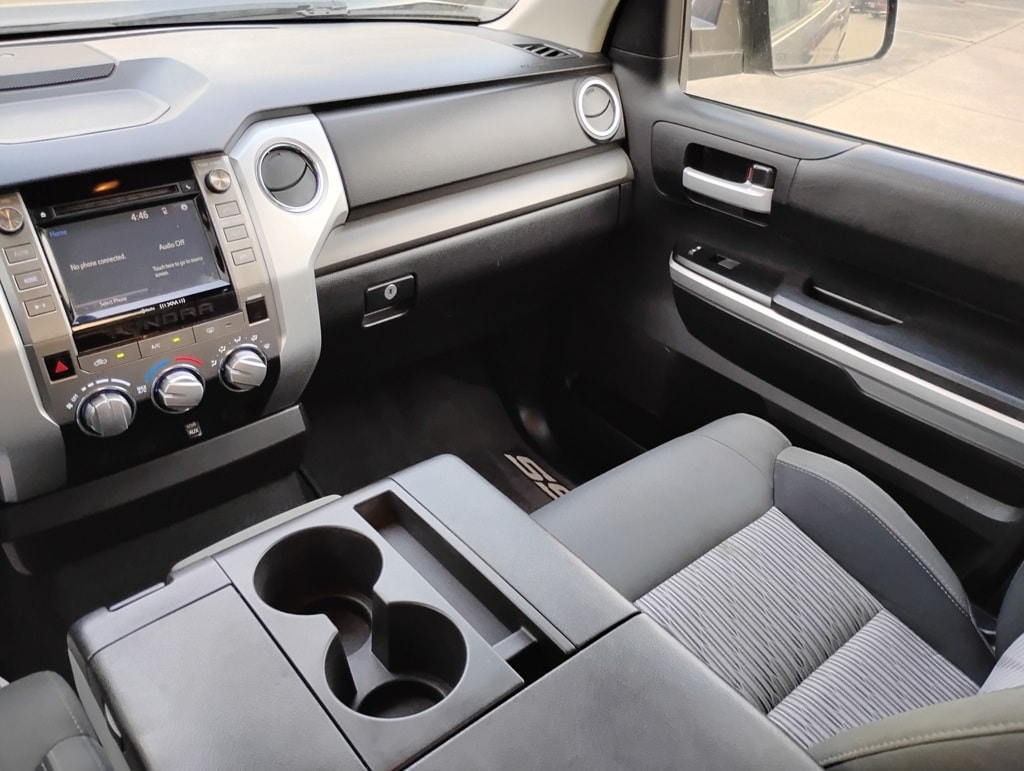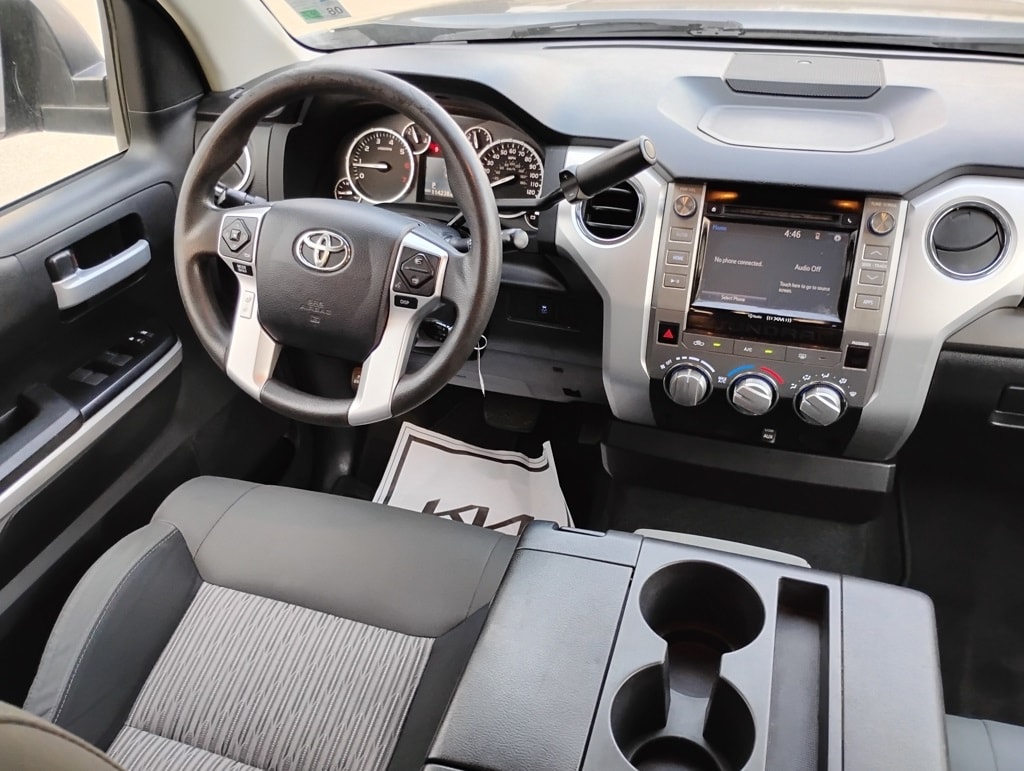 Tundra SR5 4.6L V8, 4D CrewMax, 4.6L V8 DOHC 32V VVT-i, 6-Speed Automatic Electronic with Overdrive, RWD, Cloth, 18" x 8J Styled Steel Wheels, 6 Speakers, Air Conditioning, AM/FM radio: SiriusXM, Brake assist, CD player, Dual front impact airbags, Dual front side impact airbags, Electronic Stability Control, Exterior Parking Camera Rear, Front anti-roll bar, Front Center Armrest w/Storage, Front fog lights, Front wheel independent suspension, Heated door mirrors, Knee airbag, Low tire pressure warning, Occupant sensing airbag, Overhead airbag, Panic alarm, Passenger door bin, Power door mirrors, Power steering, Power windows, Radio: Entune Audio Plus, Rear step bumper, Rear window defroster, Remote keyless entry, SIRIUSXM Satellite Radio, 3-Passenger Front Bench Seat, 3.91 Axle Ratio, 4-Wheel Disc Brakes, ABS brakes, Driver door bin, Driver vanity mirror, Fabric Seat Trim, Front reading lights, Illuminated entry, Outside temperature display, Overhead console, Passenger vanity mirror, Rear reading lights, Rear seat center armrest, Speed control, Speed-sensing steering, Split folding rear seat, Tachometer, Tilt steering wheel, Traction control, Variably intermittent wipers, and Voltmeter. Odometer is 57747 miles below market average!