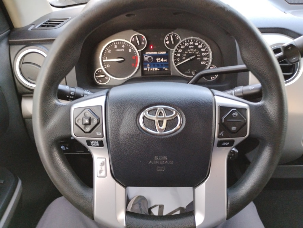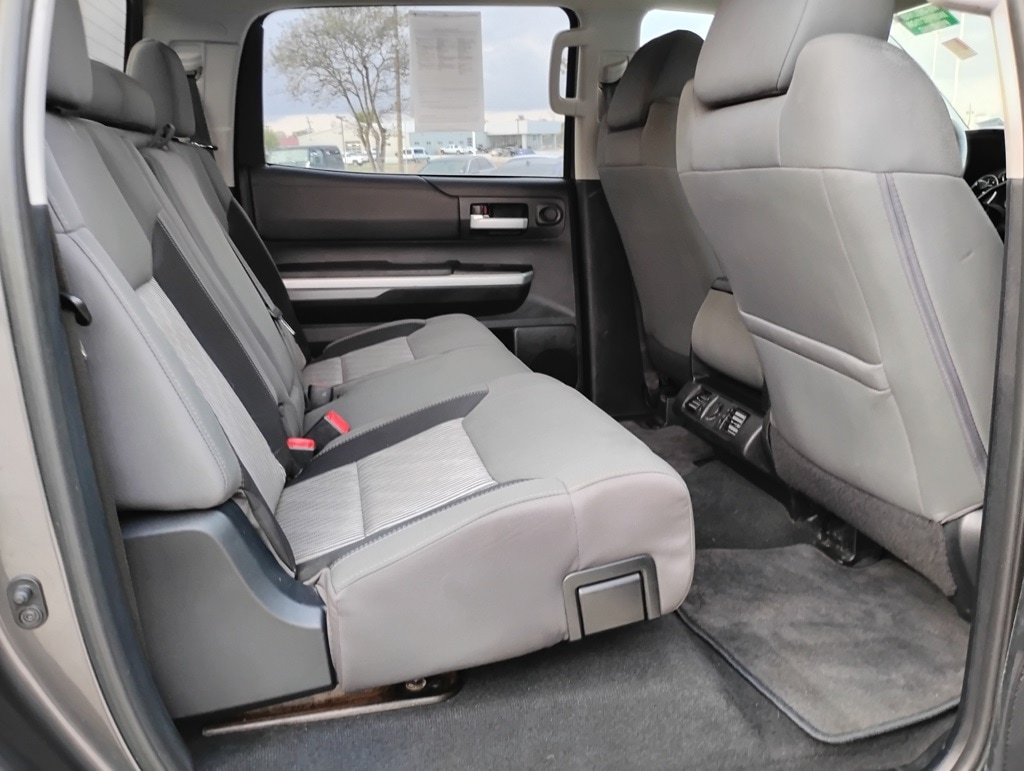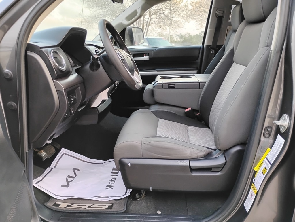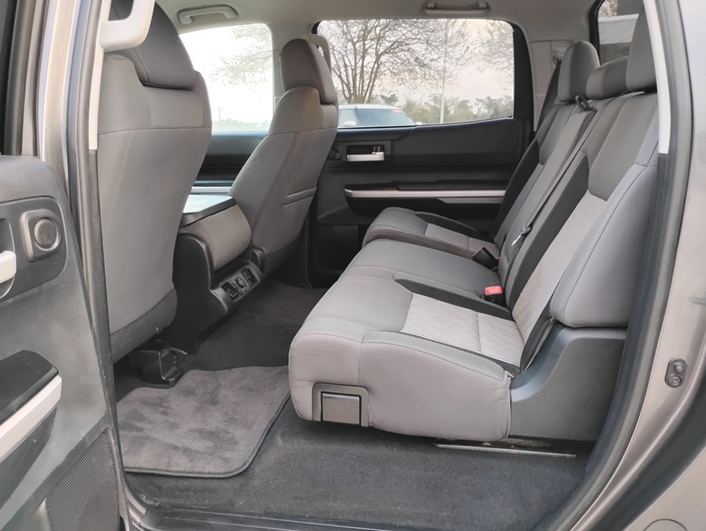 Tundra SR5 4.6L V8, 4D CrewMax, 4.6L V8 DOHC 32V VVT-i, 6-Speed Automatic Electronic with Overdrive, RWD, Cloth, 18" x 8J Styled Steel Wheels, 6 Speakers, Air Conditioning, AM/FM radio: SiriusXM, Brake assist, CD player, Dual front impact airbags, Dual front side impact airbags, Electronic Stability Control, Exterior Parking Camera Rear, Front anti-roll bar, Front Center Armrest w/Storage, Front fog lights, Front wheel independent suspension, Heated door mirrors, Knee airbag, Low tire pressure warning, Occupant sensing airbag, Overhead airbag, Panic alarm, Passenger door bin, Power door mirrors, Power steering, Power windows, Radio: Entune Audio Plus, Rear step bumper, Rear window defroster, Remote keyless entry, SIRIUSXM Satellite Radio, 3-Passenger Front Bench Seat, 3.91 Axle Ratio, 4-Wheel Disc Brakes, ABS brakes, Driver door bin, Driver vanity mirror, Fabric Seat Trim, Front reading lights, Illuminated entry, Outside temperature display, Overhead console, Passenger vanity mirror, Rear reading lights, Rear seat center armrest, Speed control, Speed-sensing steering, Split folding rear seat, Tachometer, Tilt steering wheel, Traction control, Variably intermittent wipers, and Voltmeter. Odometer is 57747 miles below market average!