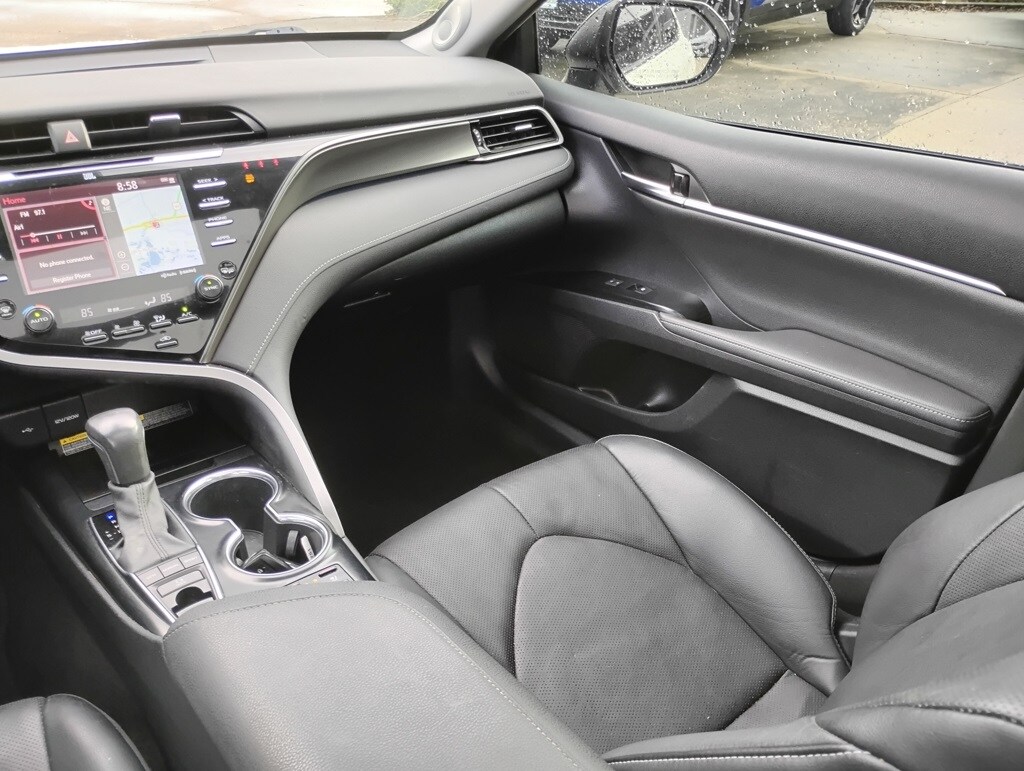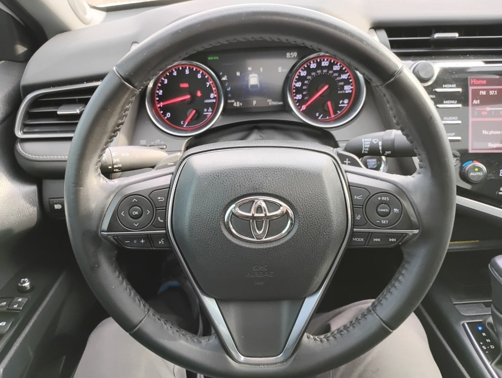 Camry XSE V6, 4D Sedan, 3.5L V6 DOHC 24V, 8-Speed Automatic, FWD, Leather, 4-Wheel Disc Brakes, ABS brakes, Air Conditioning, AM/FM radio: SiriusXM, Apple CarPlay/Android Auto, Auto High-beam Headlights, Auto-dimming Rear-View mirror, Automatic temperature control, Bumpers: body-color, CD player, Compass, Delay-off headlights, Driver door bin, Driver vanity mirror, Dual front impact airbags, Dual front side impact airbags, Emergency communication system: Safety Connect with 1-year trial, Four wheel independent suspension, Front anti-roll bar, Front Bucket Seats, Front Center Armrest, Front dual zone A/C, Front reading lights, Fully automatic headlights, Garage door transmitter: HomeLink, Heads-Up Display, Heated front seats, Knee airbag, Leather Seat Trim, Low tire pressure warning, Occupant sensing airbag, Overhead airbag, Panic alarm, Power driver seat, Power passenger seat, Power steering, Power windows, Radio data system, Radio: AM/FM/HD Audio Plus w/JBL w/Clari-Fi, Rear window defroster, Remote keyless entry, Security system, Speed control, Speed-sensing steering, Split folding rear seat, Steering wheel mounted audio controls, Traction control, 9 Speakers, Alloy wheels, Brake assist, Electronic Stability Control, Exterior Parking Camera Rear, Heated door mirrors, Illuminated entry, Leather Shift Knob, Multi-Stage Heated Front Bucket Seats, Outside temperature display, Overhead console, Passenger door bin, Passenger vanity mirror, Power door mirrors, Power moonroof, Rear anti-roll bar, Rear reading lights, Rear seat center armrest, Rear side impact airbag, Spoiler, Sport steering wheel, Tachometer, Telescoping steering wheel, Tilt steering wheel, Trip computer, Turn signal indicator mirrors, Variably intermittent wipers, and Wheels: 8.0J x 19" Black Machined-Finish Alloy. 22/32 City/Highway MPG