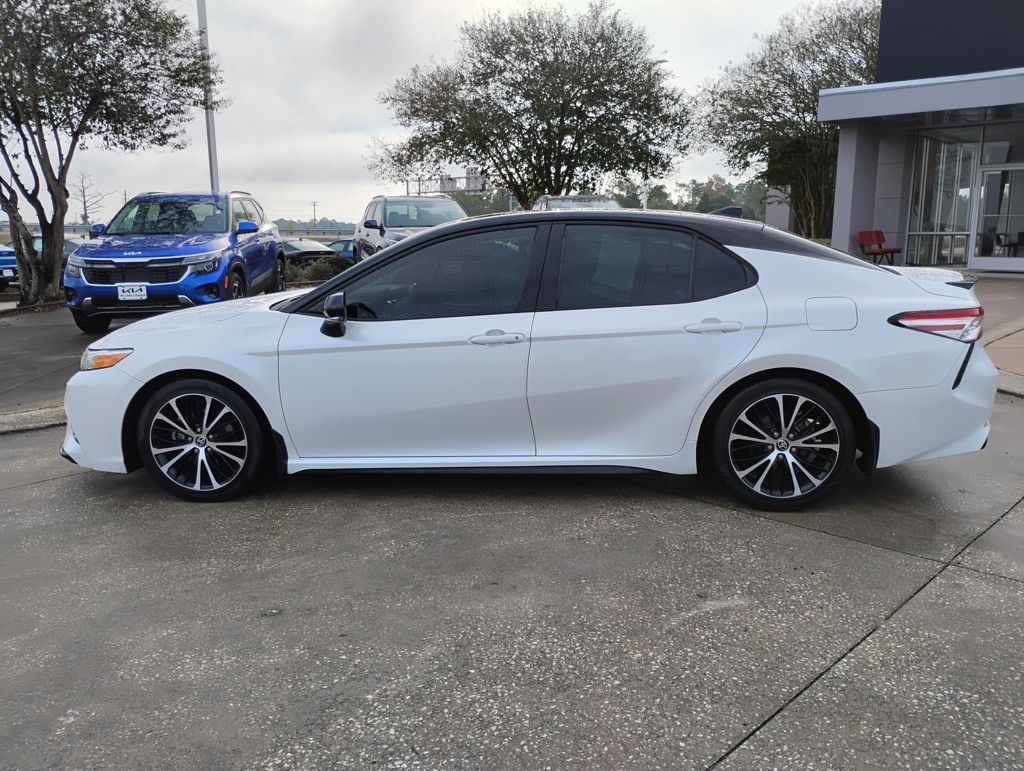 Pearl 2020 Toyota Camry XSE V6 FWD 8-Speed Automatic 3.5L V6 DOHC 24V *RECENT TRADE IN*, Camry XSE V6, 4D Sedan, 3.5L V6 DOHC 24V, 8-Speed Automatic, FWD, Leather, 4-Wheel Disc Brakes, ABS brakes, Air Conditioning, AM/FM radio: SiriusXM, Apple CarPlay/Android Auto, Auto High-beam Headlights, Auto-dimming Rear-View mirror, Automatic temperature control, Bumpers: body-color, CD player, Compass, Delay-off headlights, Driver door bin, Driver vanity mirror, Dual front impact airbags, Dual front side impact airbags, Emergency communication system: Safety Connect with 1-year trial, Four wheel independent suspension, Front anti-roll bar, Front Bucket Seats, Front Center Armrest, Front dual zone A/C, Front reading lights, Fully automatic headlights, Garage door transmitter: HomeLink, Heads-Up Display, Heated front seats, Knee airbag, Leather Seat Trim, Low tire pressure warning, Occupant sensing airbag, Overhead airbag, Panic alarm, Power driver seat, Power passenger seat, Power steering, Power windows, Radio data system, Radio: AM/FM/HD Audio Plus w/JBL w/Clari-Fi, Rear window defroster, Remote keyless entry, Security system, Speed control, Speed-sensing steering, Split folding rear seat, Steering wheel mounted audio controls, Traction control.
