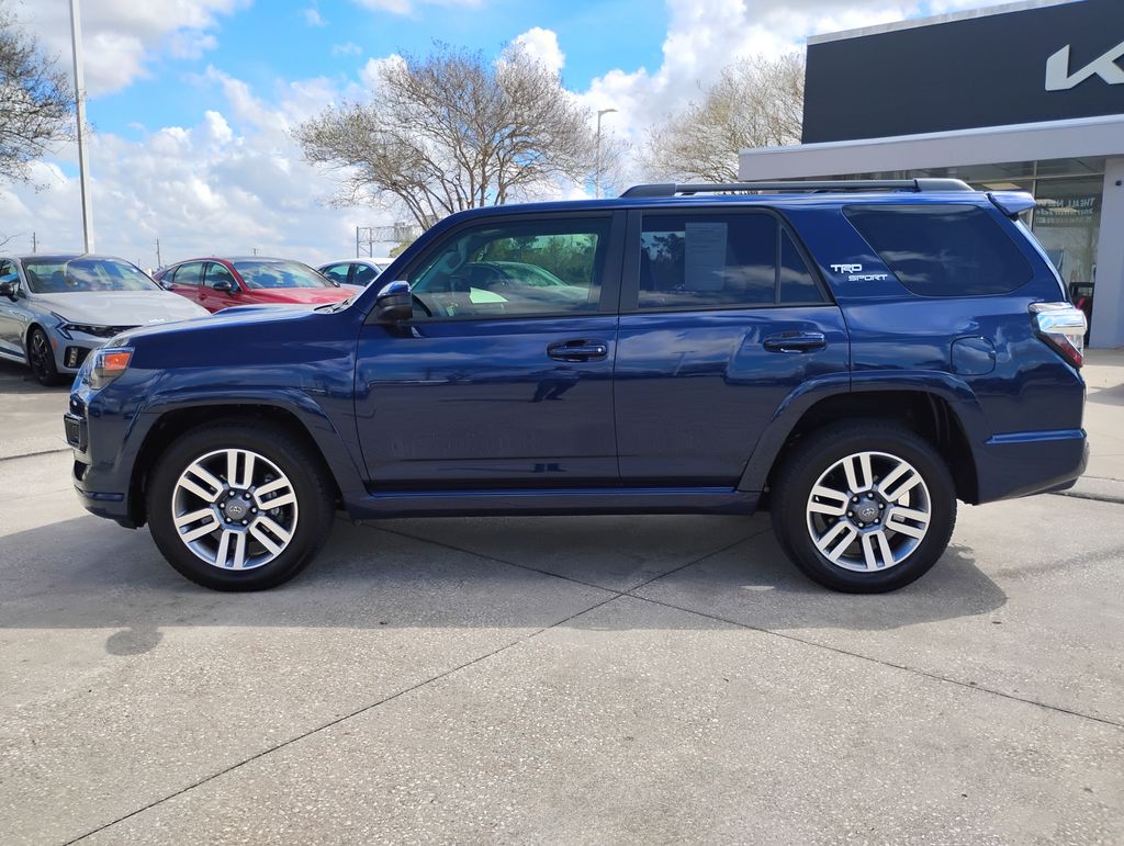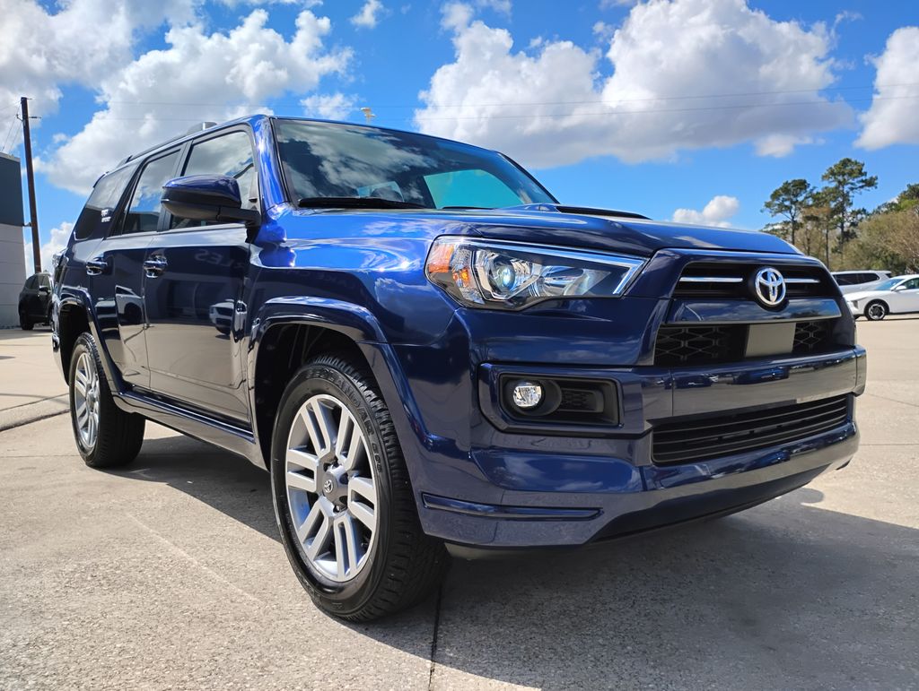 4Runner TRD Sport, 4D Sport Utility, 4.0L V6 DOHC 24V, 5-Speed with ECT, RWD, Nautical Blue Metallic, 3.727 Axle Ratio, 4-Wheel Disc Brakes, 8 Speakers, ABS brakes, Air Conditioning, Alloy wheels, AM/FM radio: SiriusXM, Anti-whiplash front head restraints, Apple CarPlay/Android Auto, Auto High-beam Headlights, Black Roof Rails, Brake assist, Bumpers: body-color, Driver door bin, Driver vanity mirror, Dual front impact airbags, Dual front side impact airbags, Electronic Stability Control, Emergency communication system: Safety Connect (1-year trial), Exterior Parking Camera Rear, Front anti-roll bar, Front Bucket Seats, Front Center Armrest, Front fog lights, Front reading lights, Front wheel independent suspension, Heated door mirrors, Illuminated entry, Knee airbag, Leather Shift Knob, Leather steering wheel, Low tire pressure warning, Occupant sensing airbag, Outside temperature display, Overhead airbag, Overhead console, Panic alarm, Passenger door bin, Passenger vanity mirror, Power door mirrors, Power driver seat, Power steering, Power windows, Radio: Audio, Rear anti-roll bar, Rear seat center armrest, Rear window defroster, Rear window wiper, Remote keyless entry, Security system, Shift Knob, SofTex Seat Trim, Speed control, Speed-sensing steering, Split folding rear seat, Spoiler, Steering wheel mounted audio controls, Tachometer, Telescoping steering wheel, Tilt steering wheel, Traction control, TRD Sport Badge, TRD Sport Carpet Floor Mats, Trip computer, Variably intermittent wipers, and Wheels: 20" Unique Dual 6-Spoke Alloy. Recent Arrival! Odometer is 24282 miles below market average!